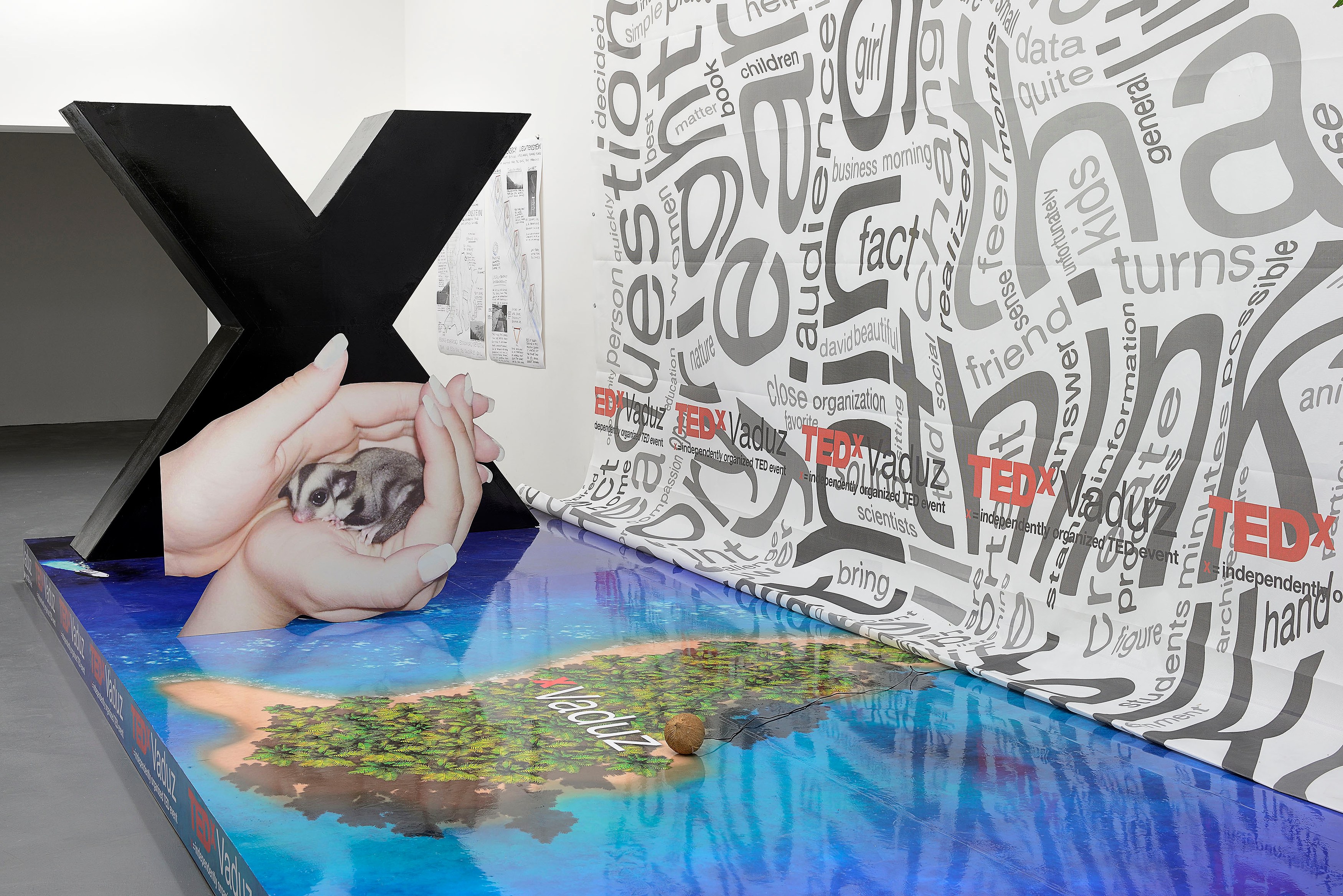 Digital print on aluminum, cut out display; steel and aluminum armature