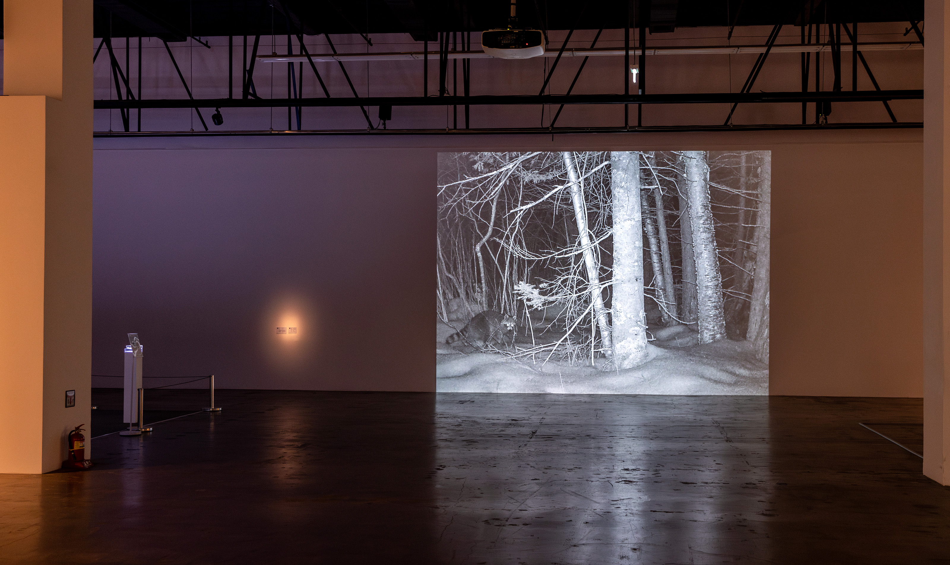 In a world saturated with human activities, both interhuman and interspecies relations have intensified. Applying the feedback effect’s sonic pattern to the landscape, the exhibition space centers itself around the effects of industrialization upon natural ecosystems. The law of profitability to which the countryside and forests are subjected, as well as the disappearance of wild ecosystems, have caused a wave of animal extinctions, due to a historically unprecedented regime of proximity. In this section of the exhibition, the artist considers the ubiquitous presence of humans, and the end of wilderness.