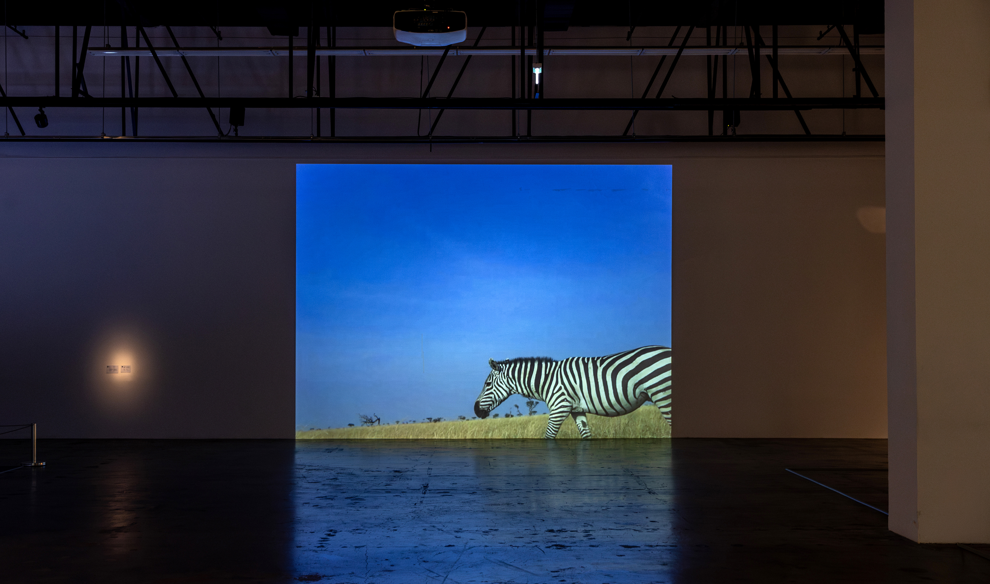 This section features a third pattern, the primordial sound known as “ôm” in the Hindu tradition, which contemporary science considers the residual sound of the original Big Bang. This floor brings together artists who address cosmic space and immensity. It constitutes a vast landscape, like a plain or a savannah, evoking a planet without human beings, a desert, a jungle, in a darker atmosphere which echoes the dimensions of the art projects and their ambition to reach new spaces. The recourse to archaic traditions and vernacular thought crystallizes around the figure of the shaman, as a guide into non-human worlds (the origin of pansori), or around prehistoric motifs.