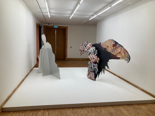 In one of the galleries, artists explore the relationship between humans and animals: Greta Alfaro shows a still life with natural forces that transcend our human frameworks, Annabelle Binnerts explores the imagery of animals in narratives, Philip Emde creates works about the stuffed animals of our childhood, Amalia Pica researches communication with and between great apes, Philip Ullman creates 3D animations with hybrid creatures and Tuomas A. Laitinen explores the possibilities in communication between humans and octopuses in his sculptures and videos.